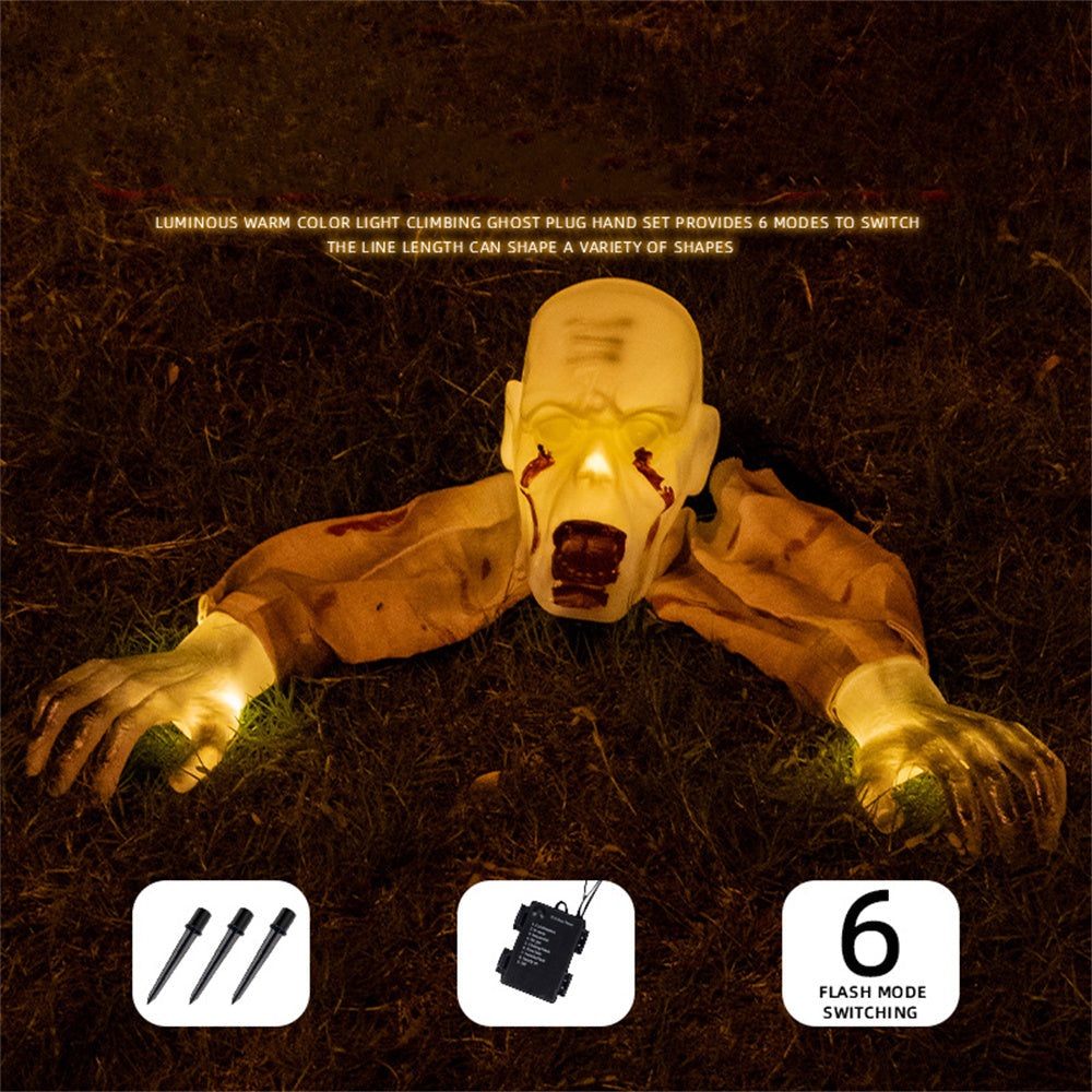 Halloween yard decorations outdoor zombie heads and hands are separate from the ground stakes. Assemble them and then insert the stakes into the ground or lawn, creating the illusion of strange zombie heads rising from graves or trapped underground. It can also be placed indoors without wooden stakes to present a weird and realistic zombie scene.