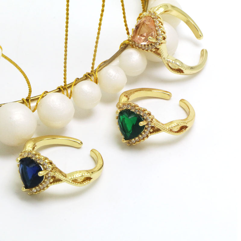 Heart Diamond Open Ring Copper