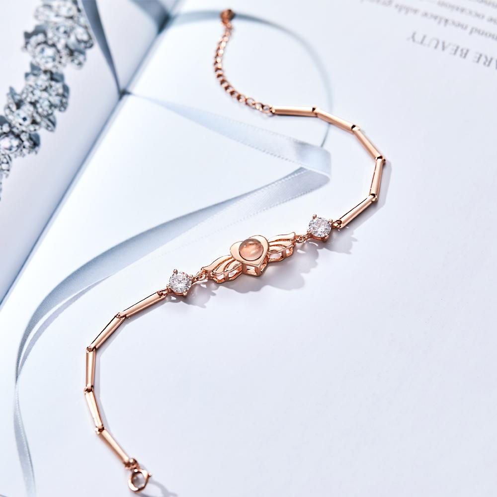 Personalized Photo Projection Bracelet Elegant Wings with Stone Jewelry for Her