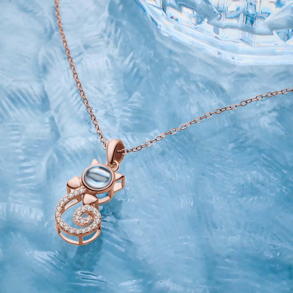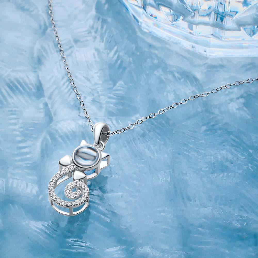 Projection Cat Photo Necklace , Personalized Girlfriend Necklace, Clavicle Photo Projection
